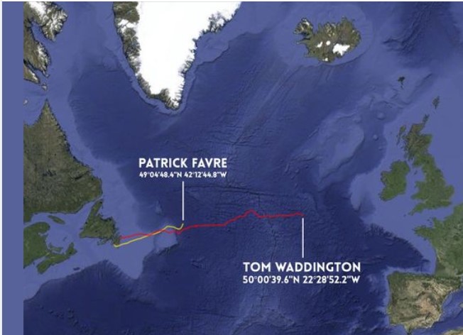 Parti le 28 juillet dernier de Trepassey à Terre-Neuve, il a ramé sur une distance de 1719 miles nautiques en 32 jours 7 heures 46 minutes à une vitesse moyenne au but de 2.22 nœuds.